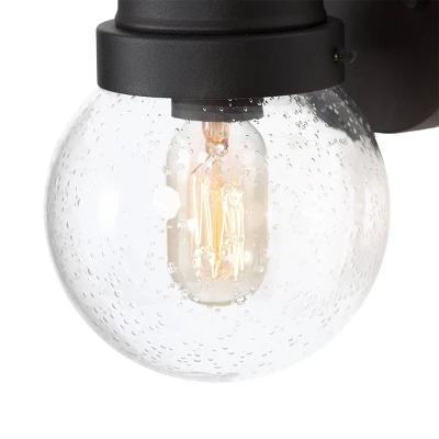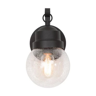 - Sandy black finish. Sturdy Metal Frame. Globe seeded glass shade.