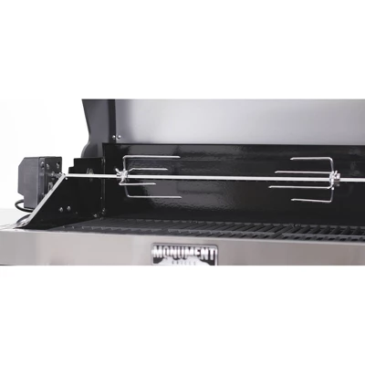 The Monument Rotisserie Kit is specifically designed for gas grills up to a 36 in. wire fire box. By adding a rotisserie kit to your Monument Gas Grill you can roast a whole chicken, pork loin, beef roasts and much more. Powered by the 120-Volt electric motor with enclosed housing to withstand the outdoor elements. This Monument Grill rotisserie kit includes the motor, 41.4 in. spit rod with handle, 2-forks with 4-prongs each and L-Bracket mount.