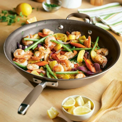 - EVEN HEATING THAT LASTS: Large skillet is engineered for fast, perfectly uniform heating. Hard-anodized construction is twice as hard as stainless steel for maximum durability.