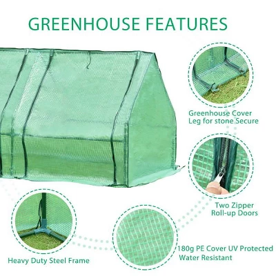 High-quality tubular steel frame ensures long working life in all weathers.Pretty durable PP connector and stable construction protect your plants from bad weather.UV- protected, waterproof, reinforced, transparent PE cover can protect your plants better.The smooth, high-quality zipper is very durable and easy to open and close the door.With Strap let cover and frame combined better.Overlong PE cover makes greenhouse more airtight and secure, just bury it in the soil, easy way but useful.This greenhouse in your backyard extends your growing season no matter where you live. In addition, you can save money by starting your plants from seeds or cuttings.