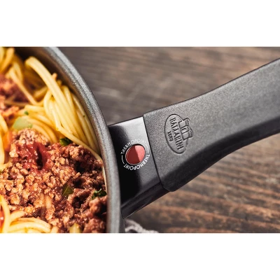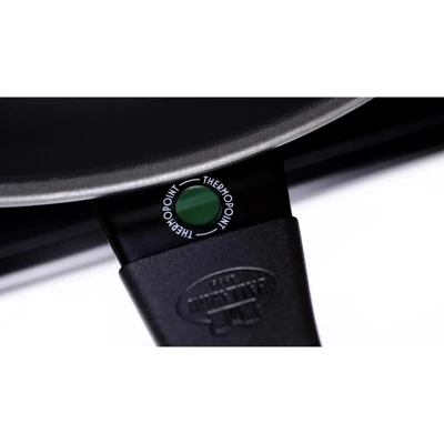 - Ergonomic heat-insulating handle for a perfect grip, with a Thermopoint heat indicator for energy saving cooking and pan protection