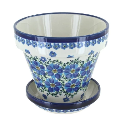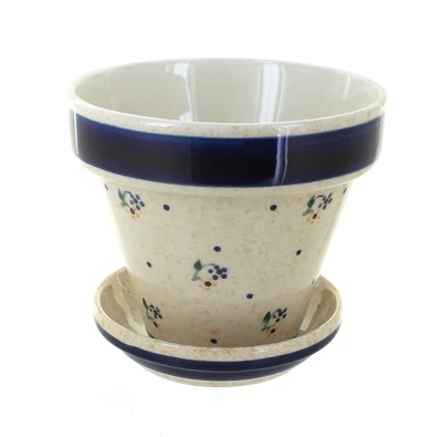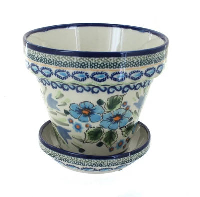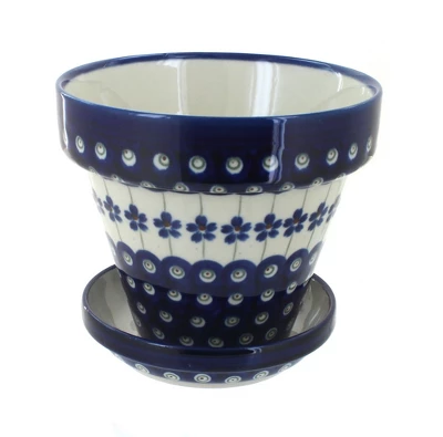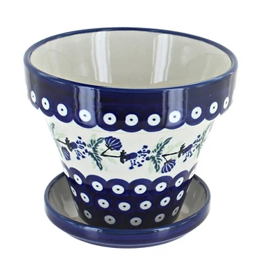 Double glazed ceramic creates a flowerpot that will last through years of rain or shine! Grow flowers on your patio or houseplants in any room. Drainage hole and tray prevent your plants from being overwatered while keeping your space clean. 5 inches tall, 4.5-inch diameter. The Art of Polish Pottery, as we know it today, started as local folk art centuries ago in the German province of Silesia. The first known pieces of “Bunzlauer” stoneware dating back to the 16th century were crafted by hand and decorated with a folk art stamping technique using potatoes. Original designs were inspired by the peacock feather using the colors of cobalt blue, sage green and ferrous red. These designs and colors are still the inspiration for modern day patterns.Today, skilled Polish artists still individually handcraft and hand decorate each piece using small sponges to stamp each pattern and color. After the process of mixing ingredients, molding the pottery, applying the decorations and glaze, the pottery is twice fired. This process makes the pottery extremely durable, it will not crack or chip easily, and it is perfect for use in the microwave, dishwasher, oven and freezer. Along with our pottery, we have sourced a range of absolutely beautiful hand blown glassware from Poland. It is the perfect addition to your Polish Pottery Collection!