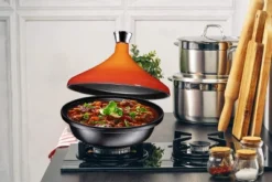 Bruntmor 4 Quart All Clad Tagin Cooking Pot – Dish With Orange Colour Diffuser