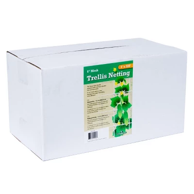 Support your climbing or vining plants while increasing your harvest with the Hydrofarm Trellis Netting. Constructed of heavy-duty polyethylene, this netting features 6-inch mesh, allowing your trellis to handle more weight and support growing crops. The netting comes in a 4 x 328-foot roll, giving you plenty of netting for your vegetable garden. If you have a smaller garden space, the netting helps increase your veggie harvest by giving you more vertical growing space. The netting also keeps vegetables healthier by keeping them off the ground, which protects the plants from ground-rot, insects, and other pests. Whether you are new to the world of gardening or have a true green thumb, this trellis netting is an incredibly useful gardening tool. The Hydrofarm Trellis Netting is ideal for tomatoes, beans, and grapes, as well as vining flowers like clematis.