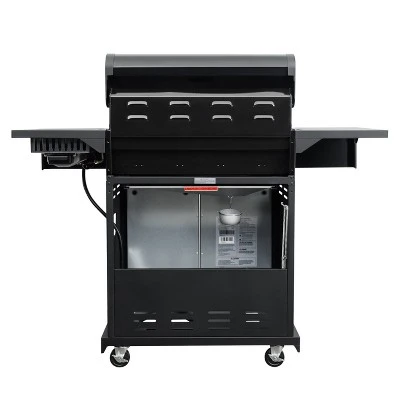 | Features | Shelf, Wheels, Side Burner, Stainless Steel Burner, Storage Tray, Removable Grease Tray, Push Button Ignitor, Exterior Temperature Gauges, electric ignition, Battery Operated |