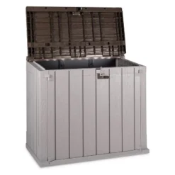 Declutter your garage and improve outdoor storage with the Keter Darwin 4 x 6 Foot Outdoor Storage Shed for Garden Accessories and Tools.Designed with polypropylene plastic, this shed is weather-proof and won’t rust, rot, or decay as months go by. No need to sand or stain – just spray the exterior clean with a hose as needed. The included side window allows plenty of natural light to enter the shed, making all the contents easily visible. The spacious and well-lit interior also features a ventilation grille that retains fresh air, excluding mildew and dampness, protecting all your garden accessories.The tongue and groove construction makes assembly easy and doesn’t require any special tools. Declutter your space with additional shelves (shelves not included) if you want to store your paint, jars, or bags of potting soil. Ready for any inclement weather, this durable shed is equipped with heavy-duty floor panels create a sturdy foundation and provide stability during inclement weather perfect for your patio, garden or backyard. For ample space and durable storage, invest in the Keter Darwin 4 x 6 Foot Outdoor Storage Shed for Garden Accessories and Tools. With this Keter Outdoor Storage Shed you can add more storage to your backyard, garage, or workshop with this easily assembled home essential.