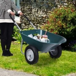 Best Choice Products Dual-Wheel Home Wheelbarrow Yard Garden Cart For Lawn, Construction – Green