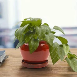 Sagebrook Home 6″ Wide Ceramic Diamond Etched Flower Planter Pot With Wooden Stand Beige