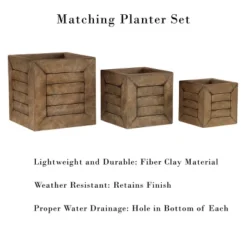 Sagebrook Home 6″ Wide Ceramic Diamond Etched Flower Planter Pot With Wooden Stand Beige