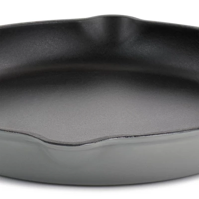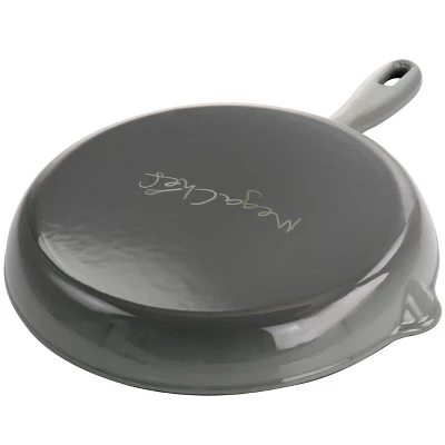 The MegaChef Round 10.25 Inch Enameled Cast Iron Skillet allows any home chef to create their best meals. Made of non-stick enameled cast iron for healthier meals by allowing cooks to cut down on oils and fats. This colorful frying pan provides the user with 2 pouring spouts to better spread delicious sauces over dishes. The durable cast iron material is guaranteed to last along with the outer enameled coating that protects the cookware from more acidic ingredients. The handle conveniently is made with a hanging hole for easy storage via hanging hooks. Bring color to the kitchen with the lovely gradient displayed on the underside of the skillet. Confidently serve wondrous meals ranging from omelettes, seared steak, or stuff baked chicken.