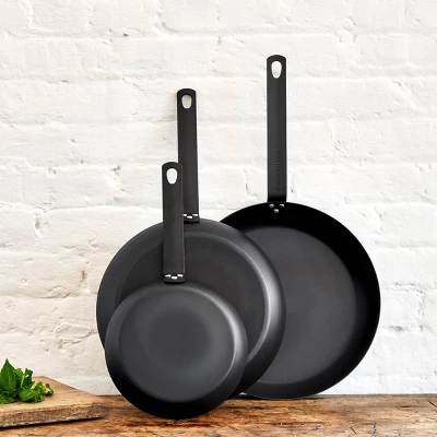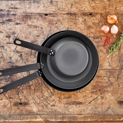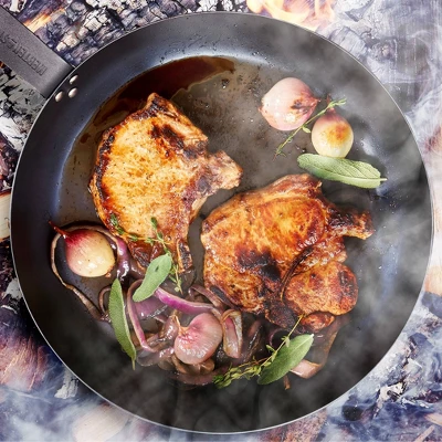 Merten & Storck Carbon delivers the rugged durability and natural nonstick patina of cast iron—but weighs 50% less. Crafted from black carbon steel for ultra-fast heating, it works great with any heat source from stovetop and oven to grill and even over open flame (hello, happy campers).