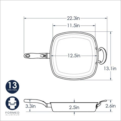 Whether you cook for a crowd regularly or just on special occasions, you know that owning a large capacity pan is crucial when you’ve go a lot of hungry folks to feed. This generously sized pan, in a square format, offers more than 20% additional cooking capacity than a 12″ round sauté pan, maximizing your cooking output eliminating the need for multiple pans. High sides serve multiple purposes, from helping to contain splatters to allowing you to cook saucy food you wouldn’t dare put into a regular shallow sauté pan.