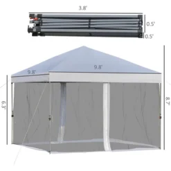 SUGIFT 10 Ft. X 10 Ft. White Gazebo Pop Up Canopy With Mesh Curtains