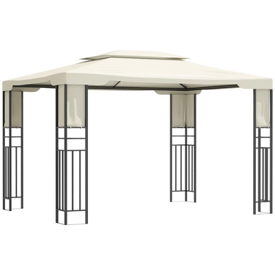 Outsunny 13′ X 10′ Patio Gazebo Outdoor Canopy Shelter With Double Vented Roof, Storage Shelves, Steel Frame For Lawn, Backyard And Deck