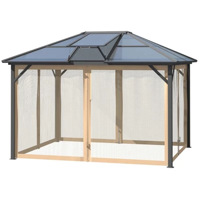 - Outdoor Outings That Don’T Bite: Use your 12×14 hardtop gazebo’s breathable mesh netting to stay cool and enjoy the breeze without any rude intruders. Let the good in; keep the bad out. (four zipper mesh netting sidewalls included).