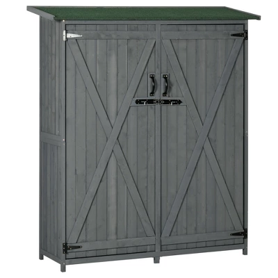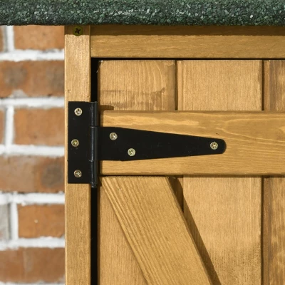 - STORE YOUR TOOLS: This storage shed is made of solid fir wood with an off-the-ground design. This outdoor storage shed can withstand harsh weather and outdoor elements.