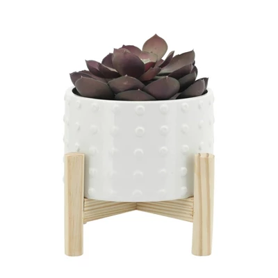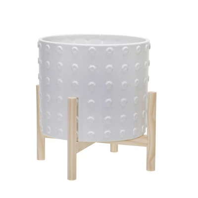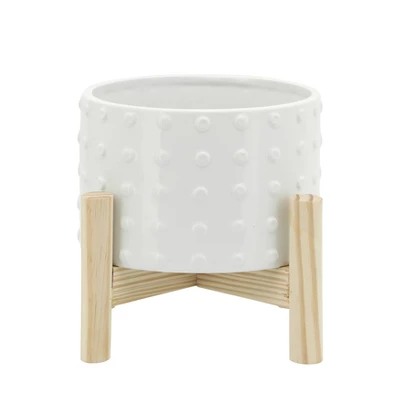 Sagebrook Home With Wood Stand Dotted Ceramic Planter Pots White