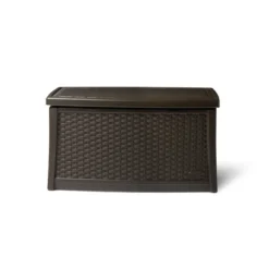 Suncast DBW9200 99 Gallon Outdoor Resin Patio Storage Chest With Handles, Mocha