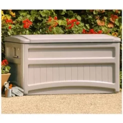 Suncast 33 Gal Hideaway Outdoor Trash Can And 73 Gal Waterproof Outdoor Deck Box