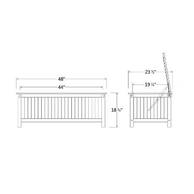 - BIG SIZE We create a great size for the storage of your outdoor essentials in 48 in. L x 23.5 in. W x 18.25 in. ~ 39.5 in. H, Inner Dimension: 44 in. L x 19.25 in. W x 13.25 in. H, Storage capacity 89 gallons