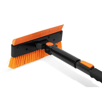 - DURABLE SNOW BRUSH WITH ROTATING HEAD: The snow brush easily removes snow and ice from car windshield, top and hood. Equipped with a rotating head allowing you to set the brush at the optimum angle for the job at hand