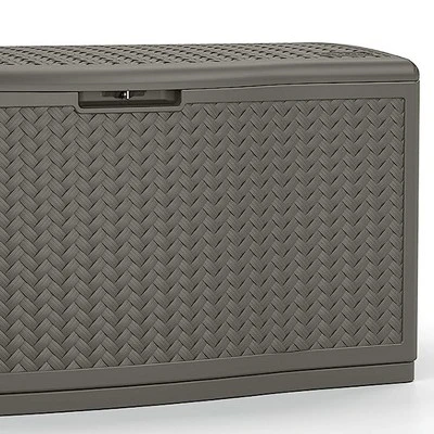 Revolutionize your outdoor living space with the Suncast 124 Gallon Extra Large Herringbone Deck Box in the breathtaking Stoney finish. Say goodbye to clutter and welcome a new era of organization and style. Designed to surpass your storage needs, this extraordinary deck box offers an impressive 124-gallon capacity to hold all your outdoor essentials in one convenient place. Whether patio cushions, gardening tools, or pool supplies, this deck box has room for it all.It’s not just about practicality; the Stoney finish adds a touch of elegance that will elevate your outdoor decor to new heights. The sleek and sophisticated design seamlessly blends with any patio or deck setting, making this storage container a standout piece.Built to withstand the harshest elements, this deck box is crafted with top-quality materials, ensuring long-lasting durability and protection for your belongings. And with a lockable lid, you can have peace of mind knowing that your items are secure.Upgrade your outdoor space with the Suncast 124 Gallon Extra Large Herringbone Deck Box in the exquisite Stoney finish, where functionality meets style. Experience the difference of a clutter-free and visually stunning environment today.