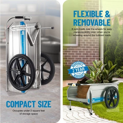 Haul anything anywhere with the Tipke Manufacturing Company Foldit Do It All Utility Cart. This strong, durable cart can hold up to 330 pounds and collapses to a compact size for easy storage.The simple cart is made of sturdy aluminum that resists rust and corrosion, perfect for use in any environment. Even years of saltwater exposure won’t harm this wagon. Optional trailer and bicycle hitches let you tow the cart behind your lawnmower or bicycle, perfect for carrying garden supplies or taking gear with you on long bicycle journeys. When not in use, the cart collapses down to a compact size, under 2 square feet, ideal for easy storage. When you need the dolly again, spring-loaded handles conveniently pop the cart up, readying it for use in minutes.With its light weight and high capacity, this wagon is perfect for camping trips and housework, while its durable construction make it useful for boating. Start hauling your supplies, soil, and more today with the Tipke Manufacturing Company Foldit Do It All Utility Cart.