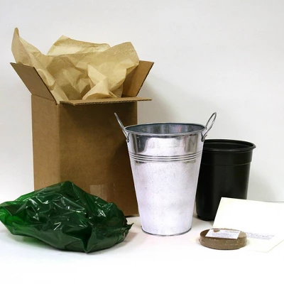 Timeless beauty, sweet perfume, and absolute dependability have made Paperwhites Narcissus the absolute all-time favorite Narcissus bulb for indoor forcing in winter. Clusters of pure white blooms will come 4-6 weeks after potting. Very easy to grow, no special handling or treatment required. Our Paperwhite kit comes with everything you need to grow this exotic plant: four Paperwhite bulbs, a 5″ x 7″ trendy, shiny, polished, stainless steel-like, decorative outer planter, a 5″ nursery pot, planting medium, and a set of growing instructions. As bulbs are essentially storage mechanisms, they already contain everything needed to produce flowers. All you will need to do is water.